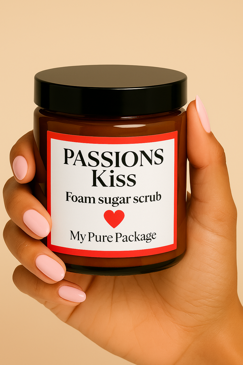 Indulge your senses and skin with Passion’s Kiss Sugar Scrub, a sweet, flirty self-love ritual designed to polish away dullness and reveal your most radiant, touchable glow.