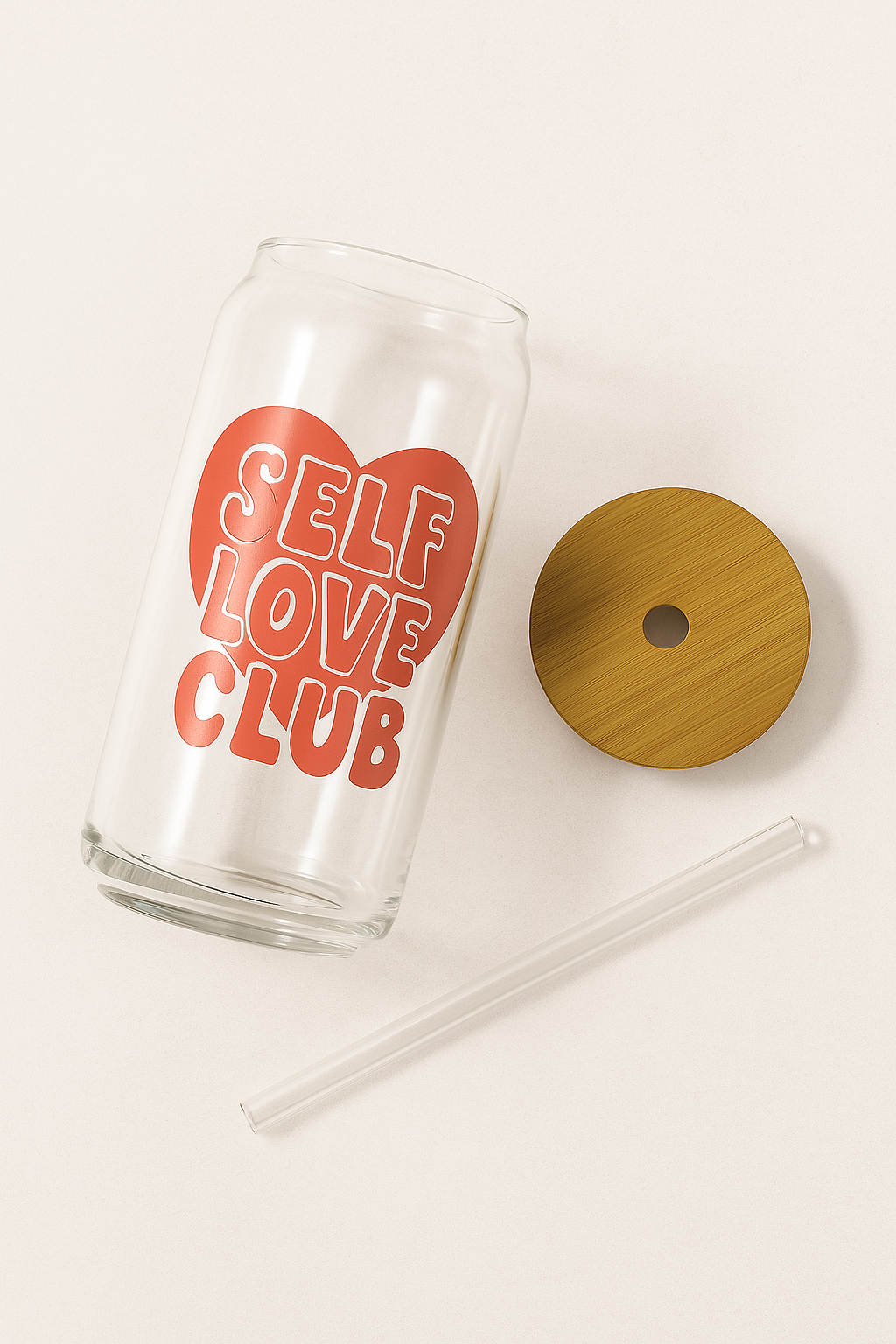 Self-Love Club Glass Cup – 16 oz Iced Coffee Tumbler with Bamboo Lid & Glass Straw